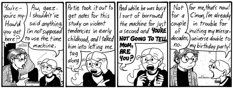 Seanan McGuire wrote a song, Time Travel Girl, about this week of strips. It is awesome and I can’t wait for her to get around to recording it.
