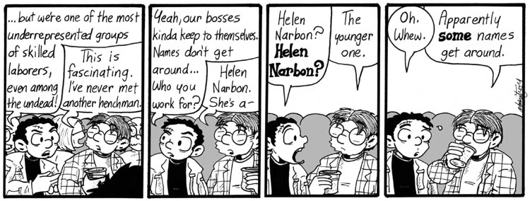 But that raises another question: Does Helen get that it’s a Princess Bride reference? Judging from her thought balloon in the fourth panel, I’m guessing she does not.