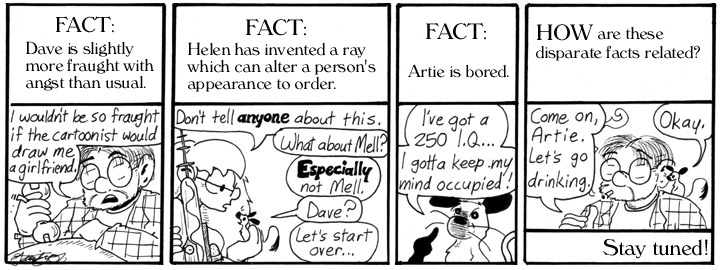 There’s an odd conflict between the in-world interactions and motives, and Dave’s fourth-wall appeal to the cartoonist….