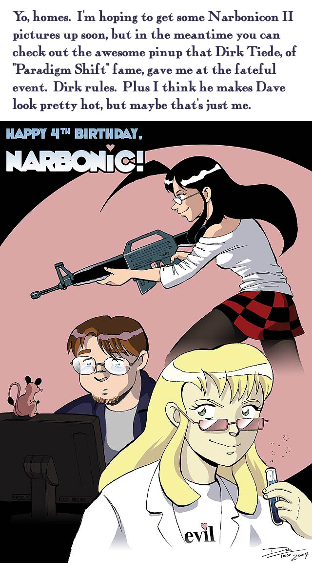I really wrote “Yo, homes.” Sometimes I think I must have been drunk when I did all the Sunday installments of Narbonic.