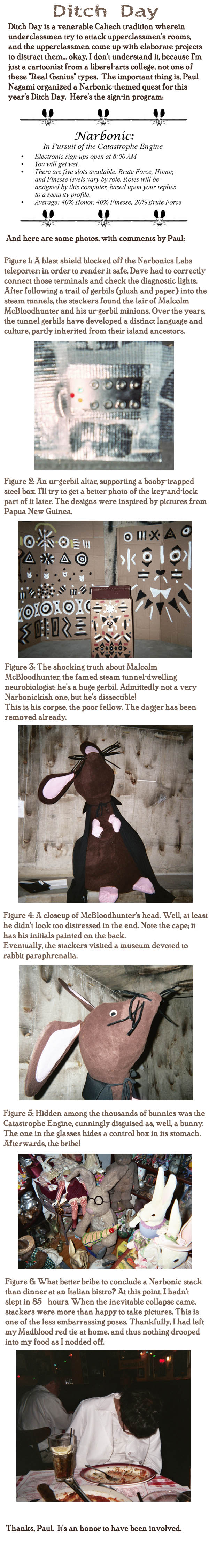Wow, this brings back memories. Memories of sleep deprivation and dragging a leaky papier-mache gerbil through the steam tunnels and trying to recruit Madblood robot actors at the last minute.