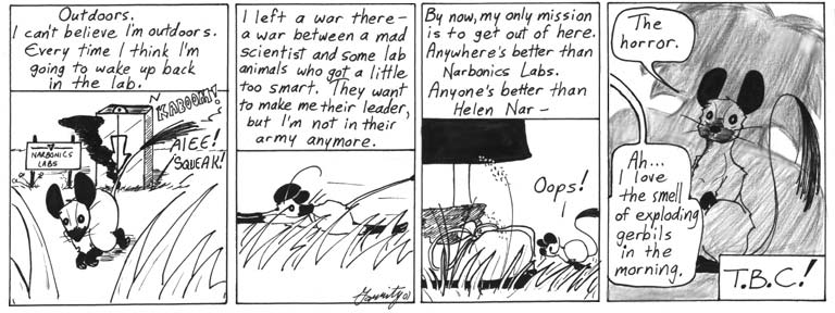 Also notable: Artie gets to do narration boxes, a rare privilege. And this strip has a “To Be Continued” caption! I never pass up an opportunity to do a “To Be Continued”!