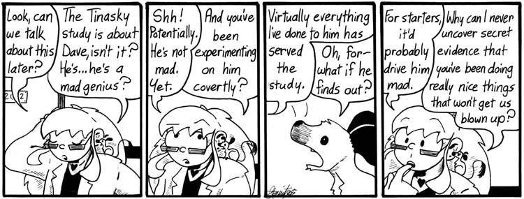 In Artie’s defense, he’s been blinded by Dave’s very obviousness — he’s grown up with Dave, known Dave for as long as either’s been around (just like we the audience had, at this point in Narbonic 1.0).