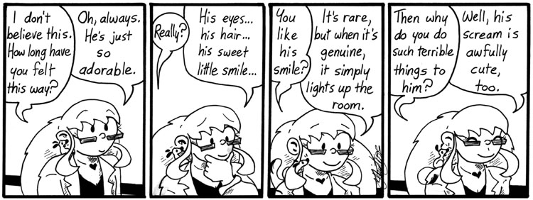 I like this strip very much, for the last line and for Helen’s lovestruck expressions. She’s so cute and so horrifying.