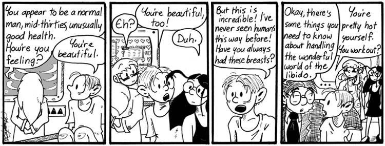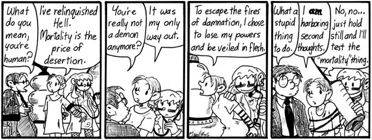 I feel bad for Caliban every time I read this strip. Or at least, I feel bad for him until I remember that he gets to have Mell, and then there is no sympathy, only envy.