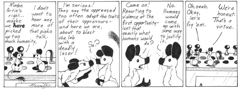 1. Monday’s Comic: And here we are in the final stretch of the gerbils’ rebellion for control of the laboratory for reasons which are tenuous at best.