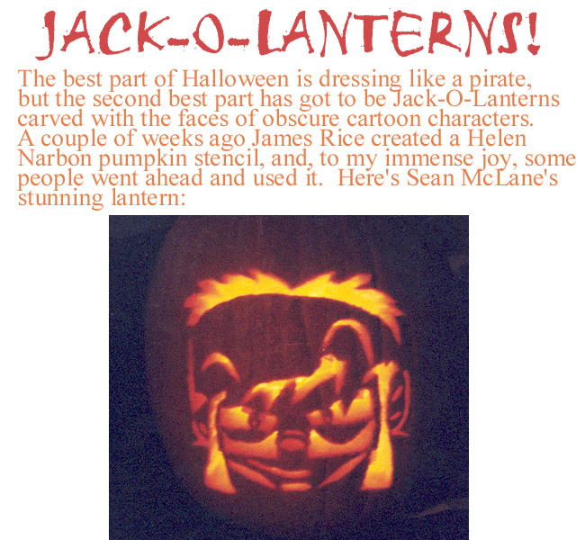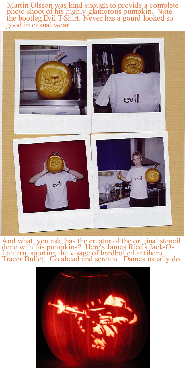 Yeah, so obviously I love it when people do stuff like this. I was delighted that some enterprising folks put James Rice’s pumpkin stencil to good use. Look how awesome!