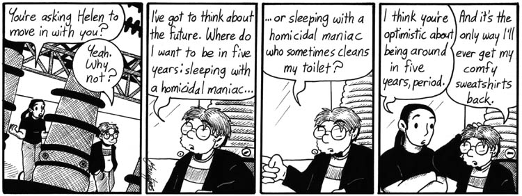 Also, I like the whole conversation in this strip. Dave’s take on his relationship with Helen is always fascinating, and I like it when he and Artie are bros.