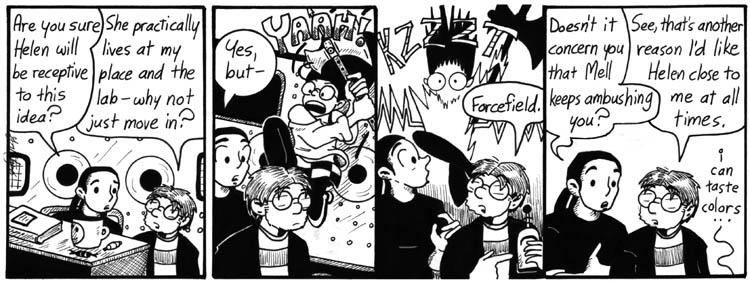 And “I can taste colors,” especially the way it’s written, is one of the funniest lines in Narbonic.