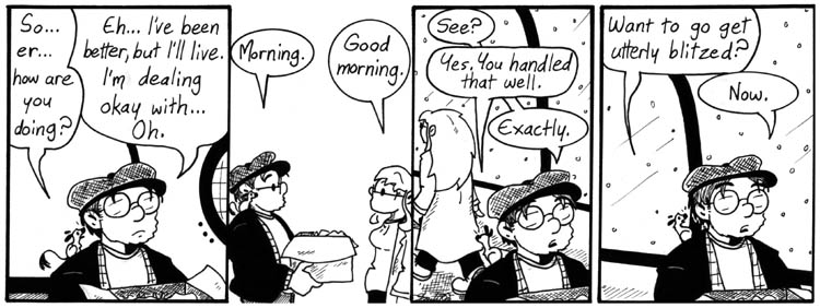 This is another one that was really hard to write, somehow. I rewrote the last panel at the very last minute while I was scanning and cleaning up the strip on Photoshop. I don’t often bother to do that.