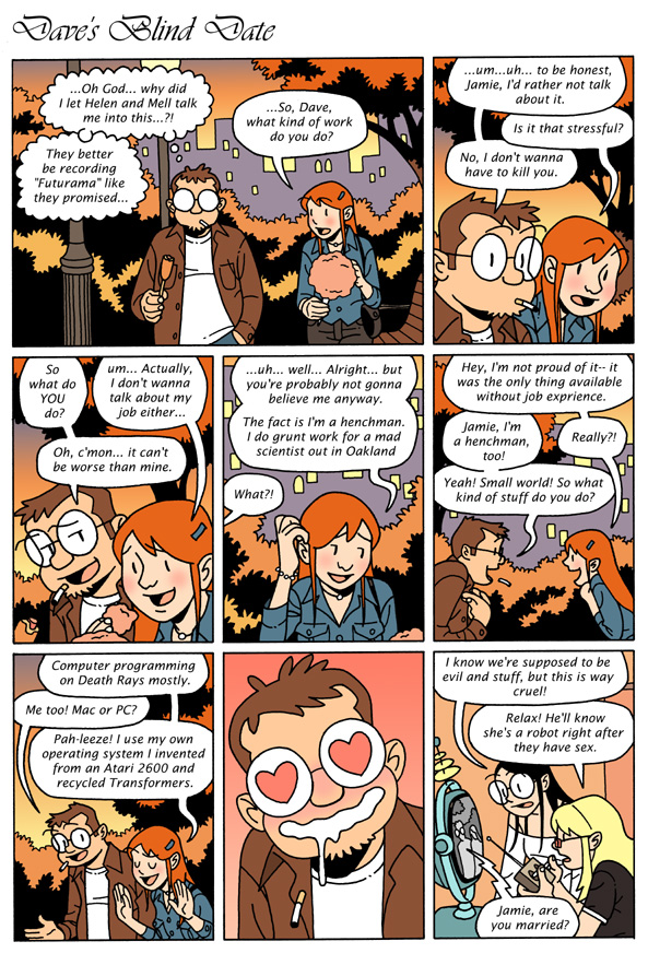 Actual line from the email to which the strip was attached: “if you’re really bored and got nothing else to do, I do a weekly comic myself you might want to check out.”
