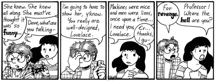 I liked that Madblood is saying “useless collection of binary digits” while Lovelace looks helplessly at her hands.