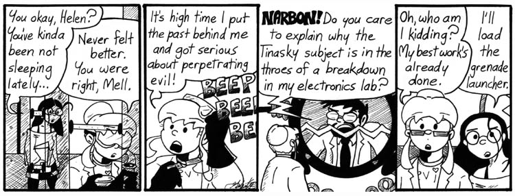 I wonder about the impact of this misunderstanding of Helen to the scientific quality of the parts of the Tinasky study published up to that point. The released data did not reveal much to the Mad Science community, at least according to Dr. Ellen Fowler (Narbonic, 2004-12-23 issue).