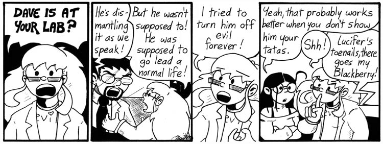 The big failure in Helen’s plan is that she never really understood how much Dave enjoyed being with her and the lab. She always thought of the mad-science life as something she dragged him into, and she thought that once she set him free he’d get away from it. She was very, very wrong about that.