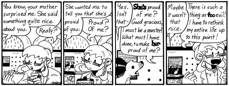 Helen is too low in the third panel. This bugs me every time I look at this strip. I know I’m probably the only person who has ever noticed or cared, but it still bugs me.