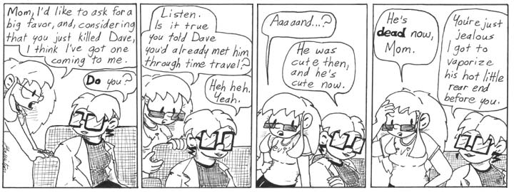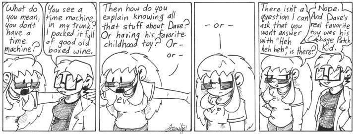 All these different timelines, with different versions of Dave running about … how come there’s no “Crisis On Infinite Daves” story arc? Would the “Everlasting Ices Of The North” story be the Narboniverse equivalent of Marvel’s “Civil War”? Don’t you just love the word “Narboniverse”?? Can you tell I had another late night update before heading off to Chicago and I’m running on 3 hours of sleep again?