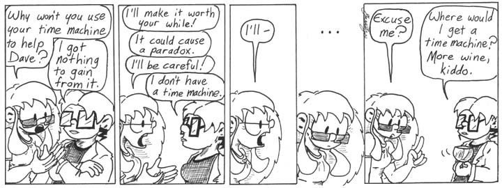 Wednesday’s Comic: Why do so many people imagine that creating a causality paradox has the effect of shutting down the entire universe? It’s almost as if they consider causation to be a Trek-era robot that responds to such problems with howls of “DOES NOT COMPUTE” before spontaenously combusting.