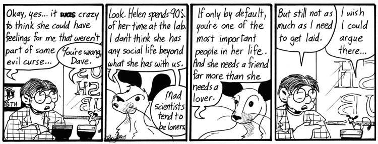 And thus ends “Demons.” It’s one of my least favorite storylines, but it does end pretty well. So there’s that. Next up: a guest week, and then we move into the beginning of the end of Narbonic. Really.
