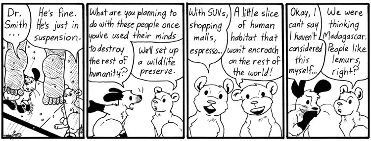 My main objection to the hamsters’ plan is that I’d hate to ruin Madagascar like that. I’m pretty sure I picked Madagascar at least partly to entertain my future collaborator Jeff Wells and his lemur fixation.