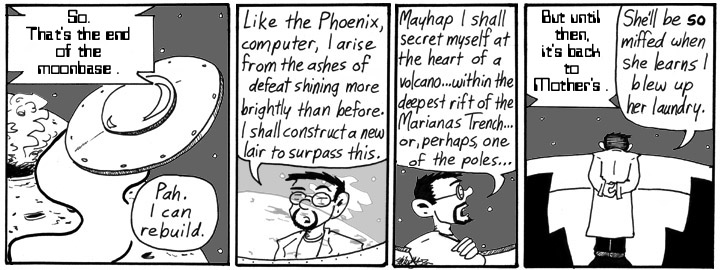 I really like the way the last panel came out. Apparently an exploding moonbase goes “poom.”