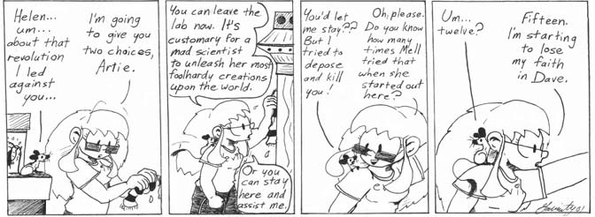 Thursday’s Comic: Just like Dave’s dearly departed electronics, Mell has to cope with the loss of some of her closest inanimate friends. For once, Helen seems the least peculiar of the bunch.