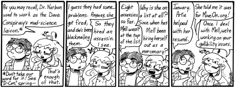 I like Dave’s miserable expression in the first panel. He really, really doesn’t like dealing with Dr. Narbon.