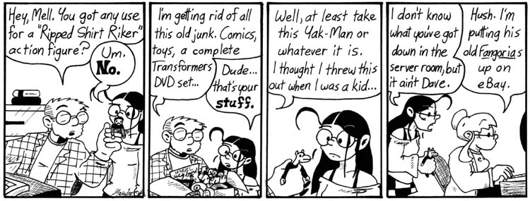 Judging from Mell’s expression in the first panel, she’s just come in from Monday’s strip.