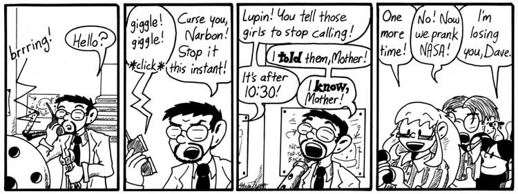 The ubiquitous Narbonics Labs couch is based on the couch in the house I shared with three people in college, back when I first started writing Narbonic. For the record, it’s blue.