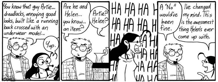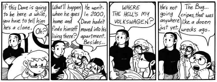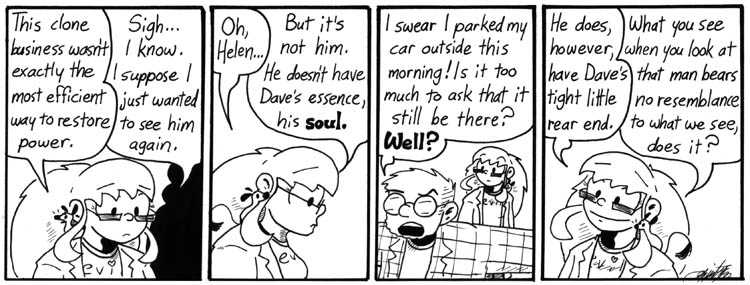 Also, Helen obviously confides in Artie much more than clone-Dave. She says as much right there in panel three. Regardless of anyone’s off-the-clock relationship, too much of that kind of thing in the workplace can lead to resentment.