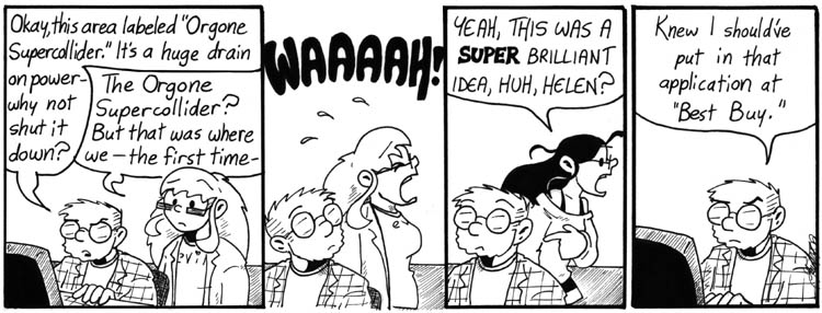 18. “Someday there will be a reckoning, Helen!” might be the most understated entry in this category, but it’s my absolute favorite line in Narbonic. Perfect in context, hilarious after multiple read-thrus. Sometimes it’s the little things.