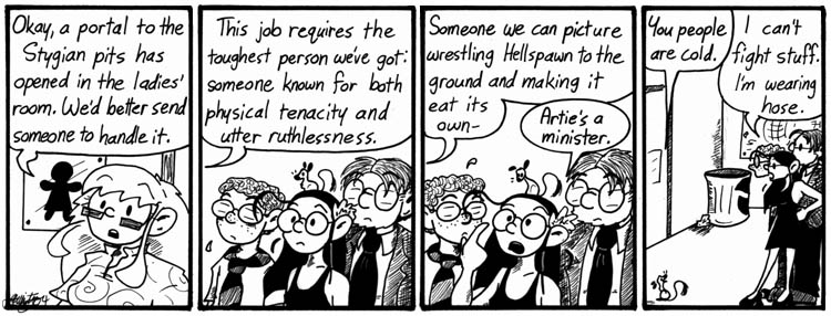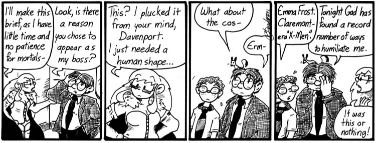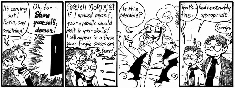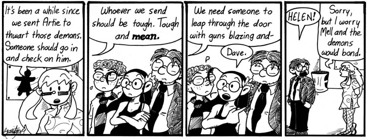 And, yes, by, “It was this or nothing!” the demon does in fact mean that outfit or nothing. Dave is also full of good ideas.