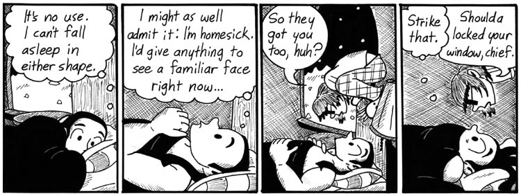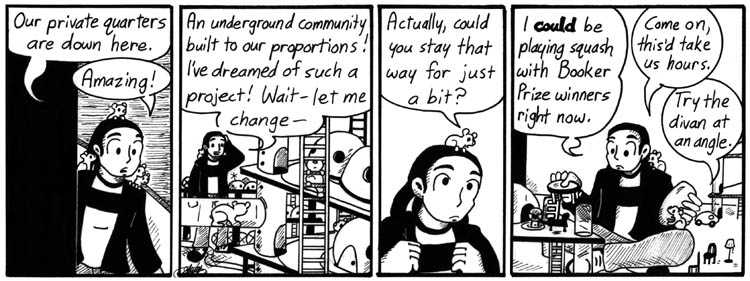 This strip is adorable and awesome. Check out the little dome house! I totally didn’t design it that way because it’s easier to draw than a regular house. Nope.