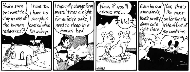 That’s one thing that has been bothering me for a while… Does Artie, somehow, manage to learn sleep morphic control? Because if not, a few years in the future, many men will wake up to discover there’s a sleeping gerbil on the pillow next to them.