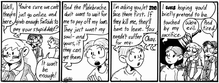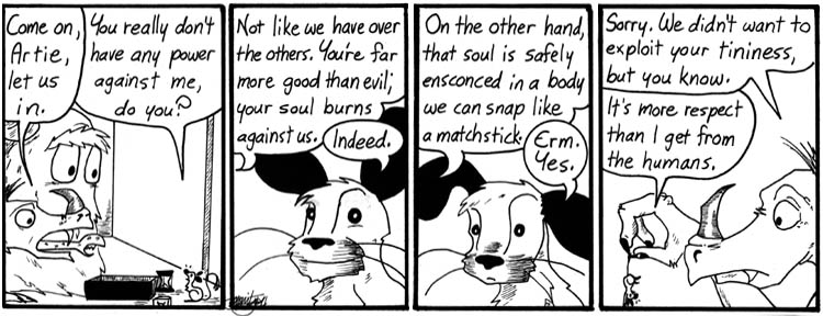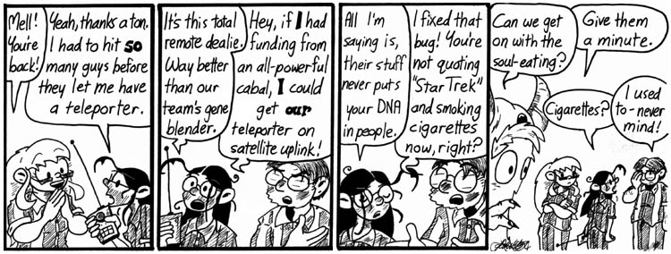It’s moments like these, when a talking gerbil created by mad scientists is arguing with demons about his soul, that I think this strip is a little weird.