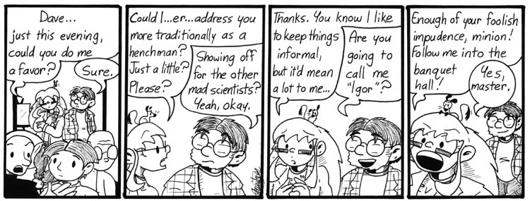 I like Dave’s little smile in the last panel. He thinks this behavior is cute. Poor guy.