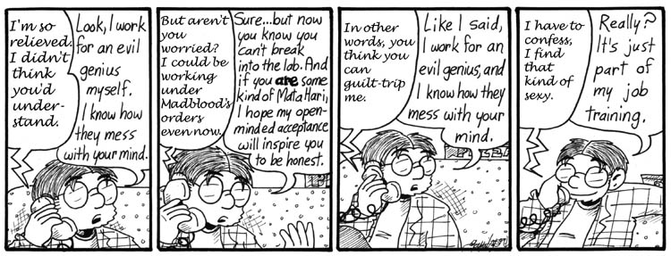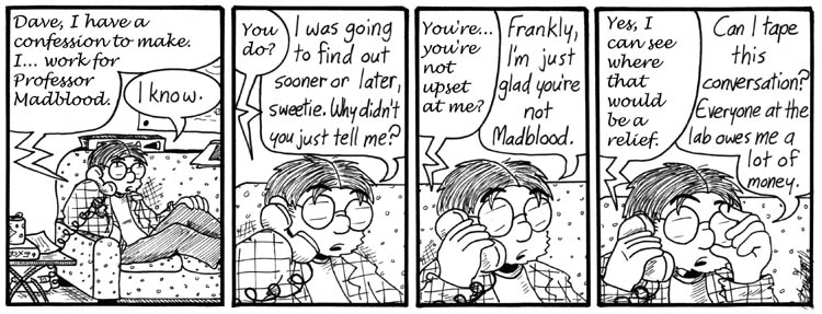 Somewhat surprisingly, Dave’s a pretty good boyfriend. He’s very patient, a virtue required of anyone who plans to date a female character in one of my comics.