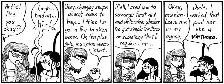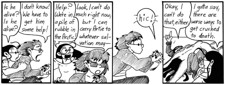 I drew too many little lines on Artie in the last panel. Naked passed-out guys are hard to draw.