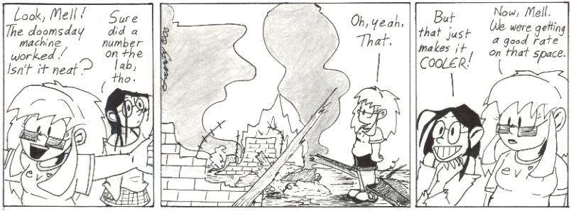 The dialogue in the third panel of Tuesday’s comic is such an incredibly mad-genius thing to say. It’s pretty much Helen’s character in one sentence. (And hey, a year and a half later it was part of Dave’s character as well.)