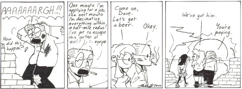 I liked Monday’s strip so much I purchased it. It now hangs proudly in my office. I feel like it sums up how some of my past jobs have gone.
