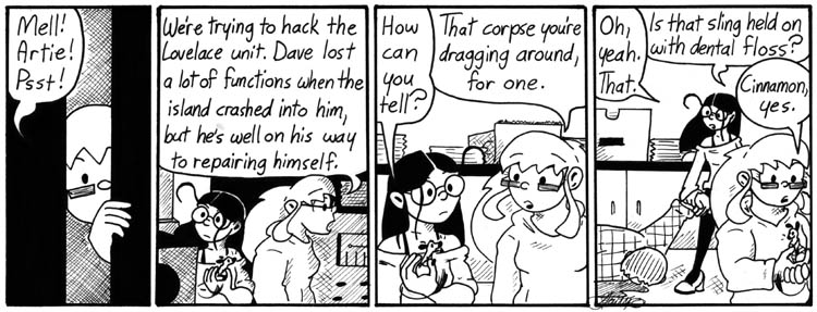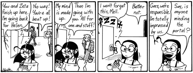 Okay, this is just a plot connecting strip, but I continue to enjoy any time Mell addresses Artie as “little buddy,” which she does regardless of his physical size at any given time.