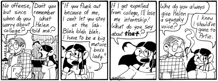Much, much later in the strip, Dave notes that Mell gives Artie a squeaky voice when she imitates him, too.