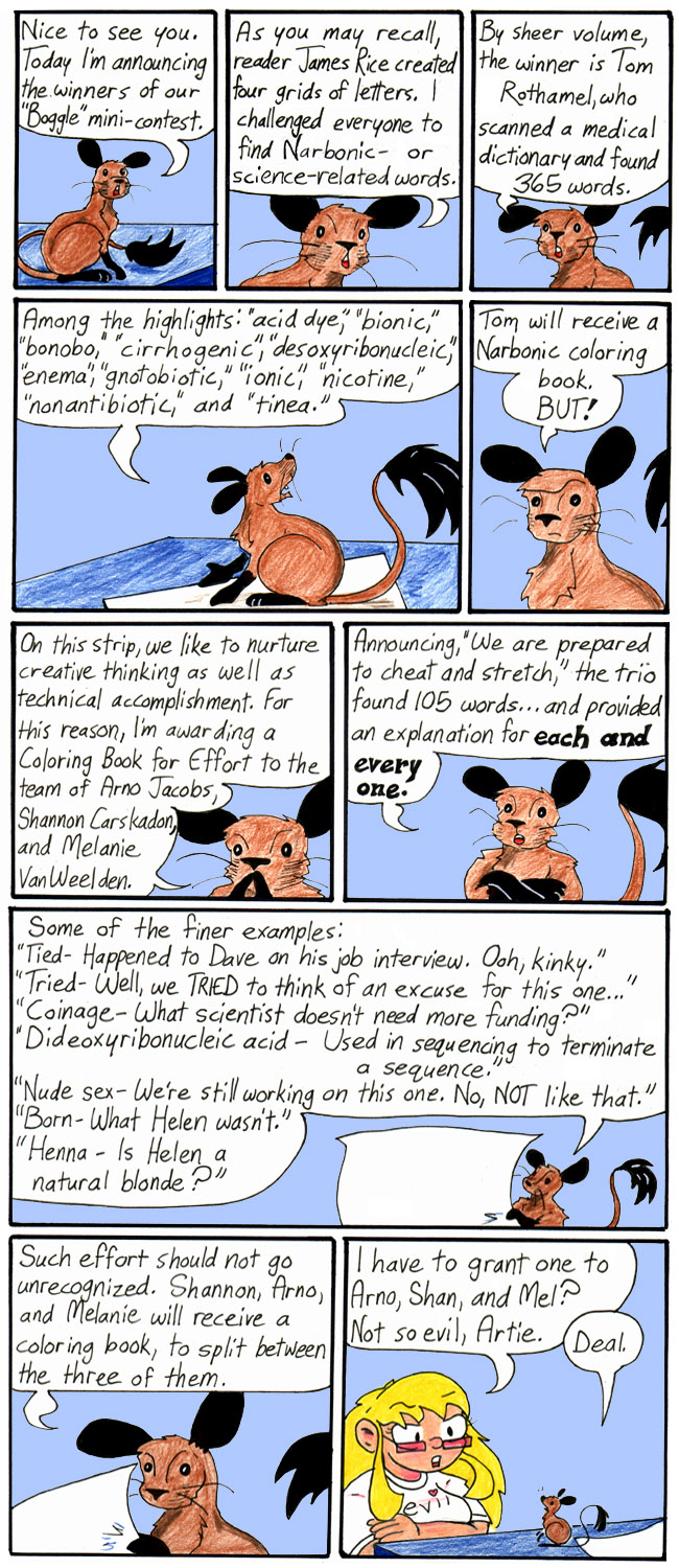 This was a fun little contest. I liked the whole Boggle thing so much that I worked a Boggle game into the upcoming “Demons” storyline.