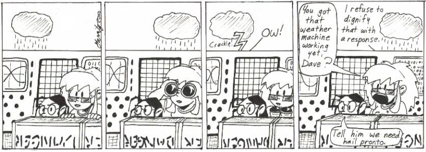 Dave has that cloud raining on him for the entire week. I just wish I’d found a way to bring it back at some later point in the strip, or, preferably, many later points. Lord, I loved doing terrible things to Dave.