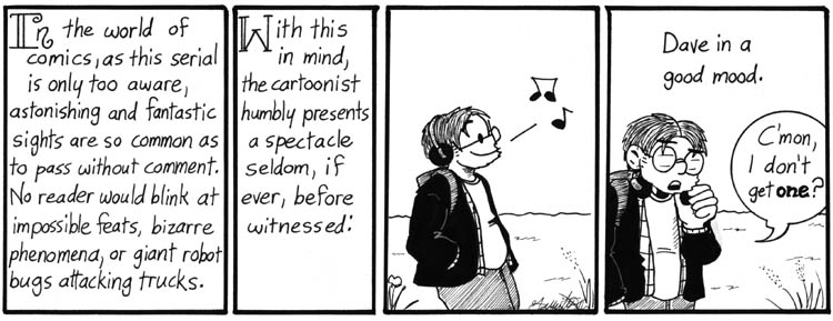 Dave being this gloriously happy is surely a sin against reality. And, as it turns out, destroying his happiness is the primary conflict of this entire storyline.