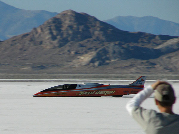 In September, Speedy got his fastest ride yet on the Bonneville Salt Flats, at just over 450mph, in the #715 Speed Demon. Unfortunately, mechanical problems prevented a complete return run, so it didn’t count as a world record. Still that run was third or forth fastest ever for a wheel driven vehicle.