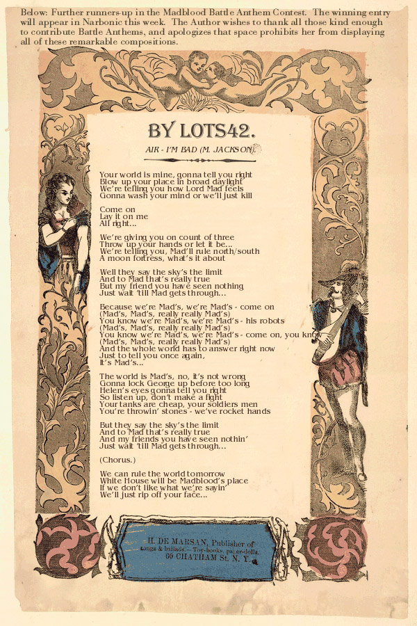 Still Further Runners-Up in the Madblood Battle Anthem Context