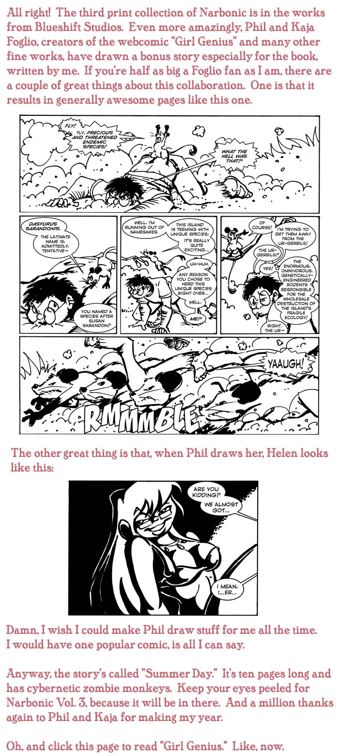 The rule I learned from this is, don’t use the word “lascivious” in a script for Phil Foglio unless you mean it. This is such a great story, and it was so much fun to do. I can’t thank Phil and Kaja enough for all the support they’ve given me over the years.