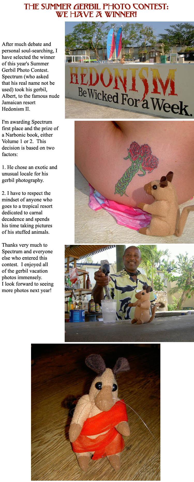 Yes, I admit it: in addition to the nudity, I picked this one because the gerbil wore a toga. GERBIL IN A TOGA!