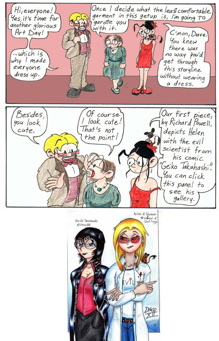 I always had the vague notion that the meta versions of Helen and Dave you see in these Sunday installments have been a couple since before Narbonic started. They just seem more comfortable with each other than the versions in the daily strips.
