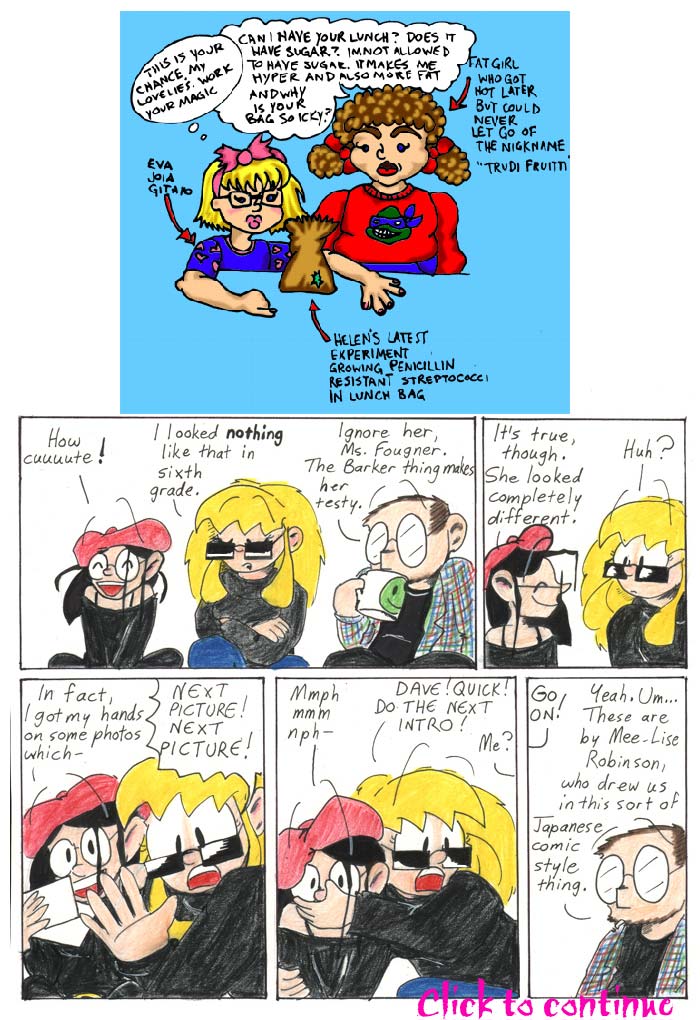 Tamara and Mee-Lise were both college friends. They’d also both appeared in Sunday features before at this point: Tamara as the creator of the Narbonic icons in last week’s strip, and Mee-Lise as the author of the “Love Theme from ‘Narbonic.'”